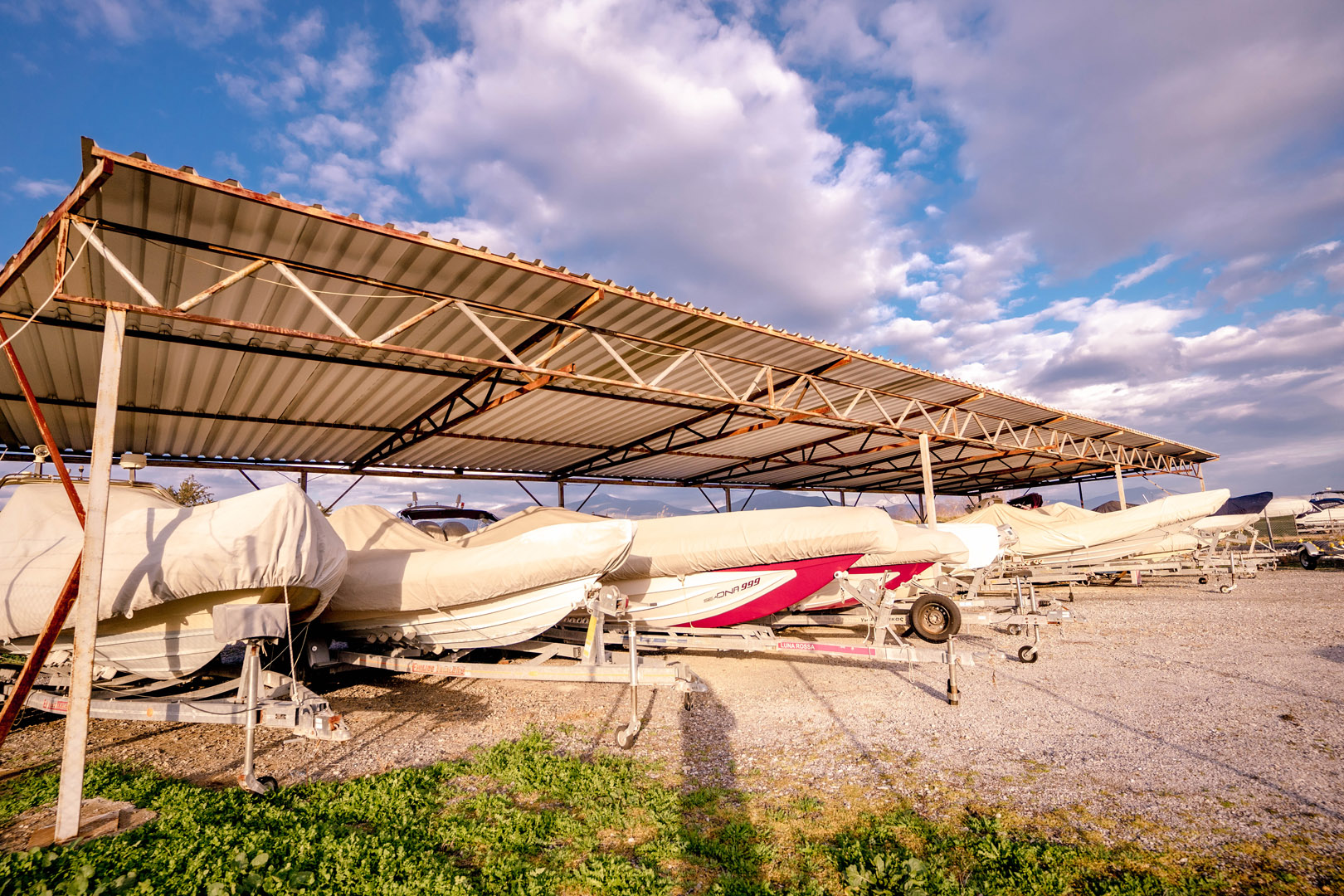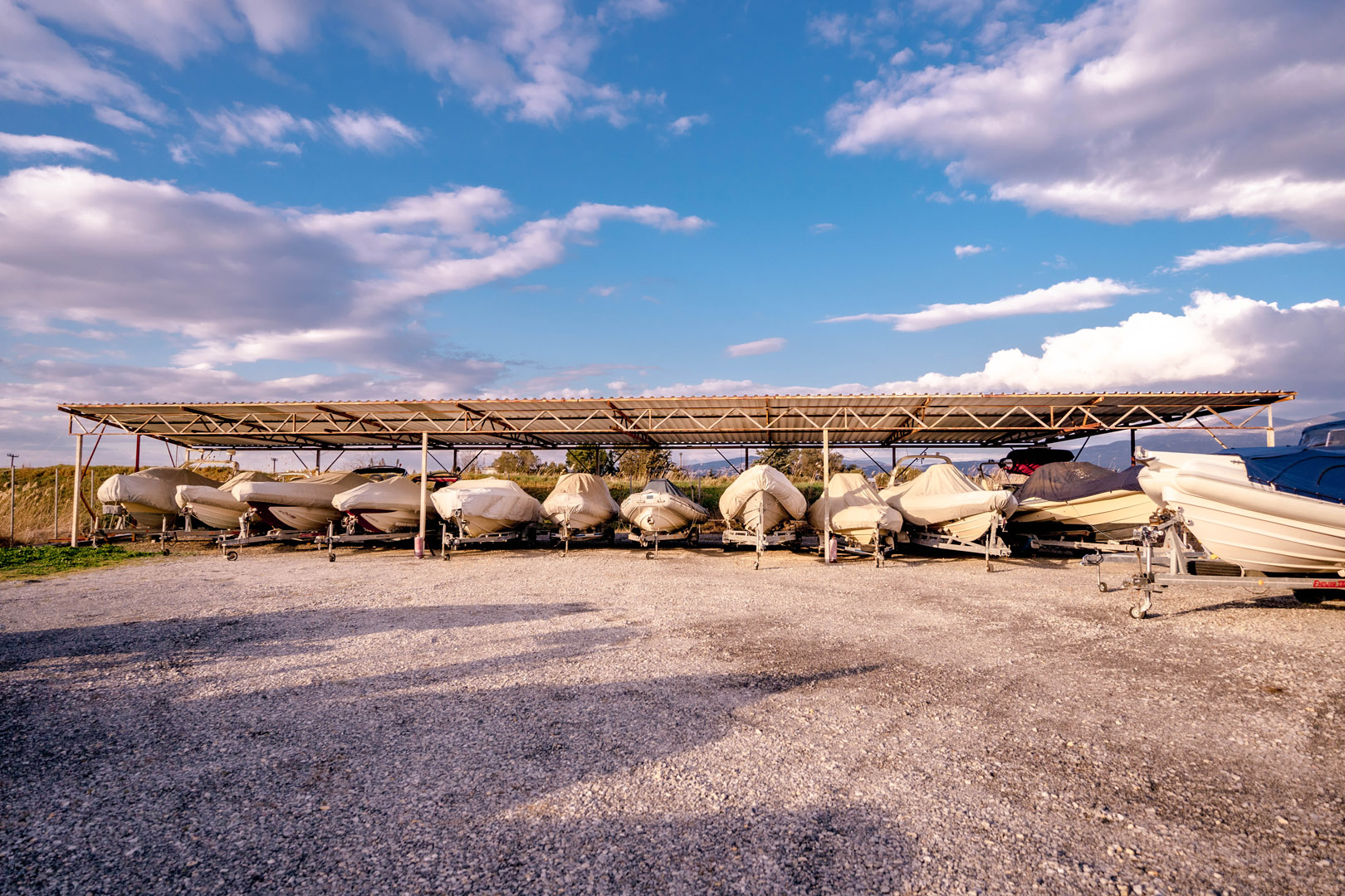 Σε εξωτερικό χώρο συνολικής έκτασης οκτώ στρεμμάτων , υπάρχουν πολυάριθμες θέσεις φύλαξης σε ανοιχτό ή στεγασμένο χώρο με όλες τις απαραίτητες παροχές. Επιπρόσθετη παροχή ρεύματος και νερού , υπάρχει για όλα τα σκάφη. Σε όλες τις εγκαταστάσεις της MAVROUDIS MARINE υπάρχουν κάμερες ασφαλείας, συναγερμός τελευταίας τεχνολογίας συνδεδεμένος με την εταιρία φύλαξης καθώς και τα κινητά του αρμόδιου προσωπικού, περίφραξη σύγχρονων προδιαγραφών, καθώς και νυχτερινή φύλαξη από εταιρία SECURITY. Επίσης παρέχονται ειδικές μαγνητικές κάρτες εισόδου πάρκινγκ σε πελάτες που επιθυμούν να λαμβάνουν τα σκάφη τους νυχτερινές ώρες..(πχ.ψαράδες)